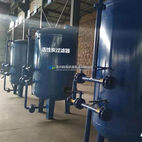 活性炭過濾器是利用活性炭顆粒進一步去除機械過濾器出水中的殘存的余氯、有機物、懸浮物的雜質(zhì),為后續(xù)的反滲透處理提供良好條件。活性炭過濾器主要利用含碳量高、分子量大、比表面積大的活性炭有機絮凝體對水中雜質(zhì)進行物理吸附,達到水質(zhì)要求,當水流通過活性炭的孔隙時,各種懸浮顆粒、有機物等被吸附在活性炭孔隙中;同時,吸附于活性炭表面的氯(次氯酸)在炭表面發(fā)生化學反應(yīng),被還原成氯離子,從而有效地去除了氯,確保出水余氯量小于0.1ppm,滿足RO膜的運行條件。隨時間推移活性炭的孔隙內(nèi)和顆粒之間的截留物逐漸增加,使濾器的前后壓差隨之升高,直至失效。在通常情況下,根據(jù)過濾器的前后壓差,利用逆向水流反洗濾料,使大部分吸附于活性炭孔隙中的截留物剝離并被水流帶走,恢復(fù)吸附功能;當活性炭達到飽和吸附容量徹底失效時,應(yīng)對活性炭再生或更換活性炭,以滿足工程要求。當活性碳過濾器因截留過量的機械雜質(zhì)而影響其正常工作,則可用反沖洗的方法來進行清洗。利用逆向進水,使過濾器內(nèi)砂濾層松動,可使粘附于濾料表面的截留物剝離并被反沖水流帶走,有利于排除濾層中的沉渣、懸浮物等,并防止濾料板結(jié),使其充分恢復(fù)截污、除氯能力,從而達到清洗的目的。反洗以進出口壓差參數(shù)設(shè)置來控制反沖洗周期,一般為三至四天,具體須視原水濁度而定?;钚蕴歼^濾器采用不銹鋼操作閥組,過濾器的啟運、正洗、反洗、停機等工序均有手動控制操作。當活性碳過濾器運行至進出口壓差為0.05~0.07MPa時,必須進行反洗?;钚蕴几鼡Q期為半年至一年。